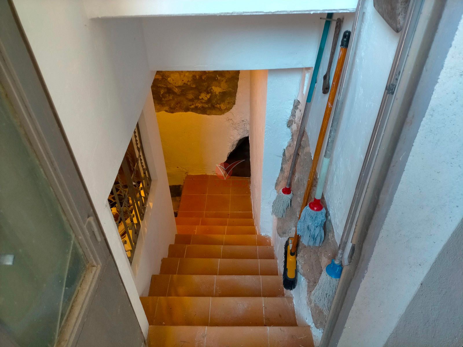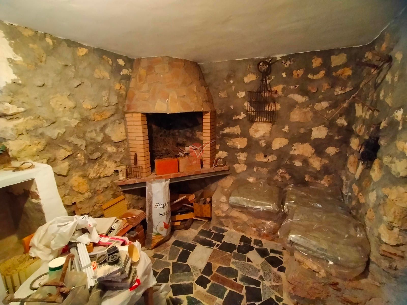 Amplio patio con cueva, fachadas tradicionales y espacios luminosos.