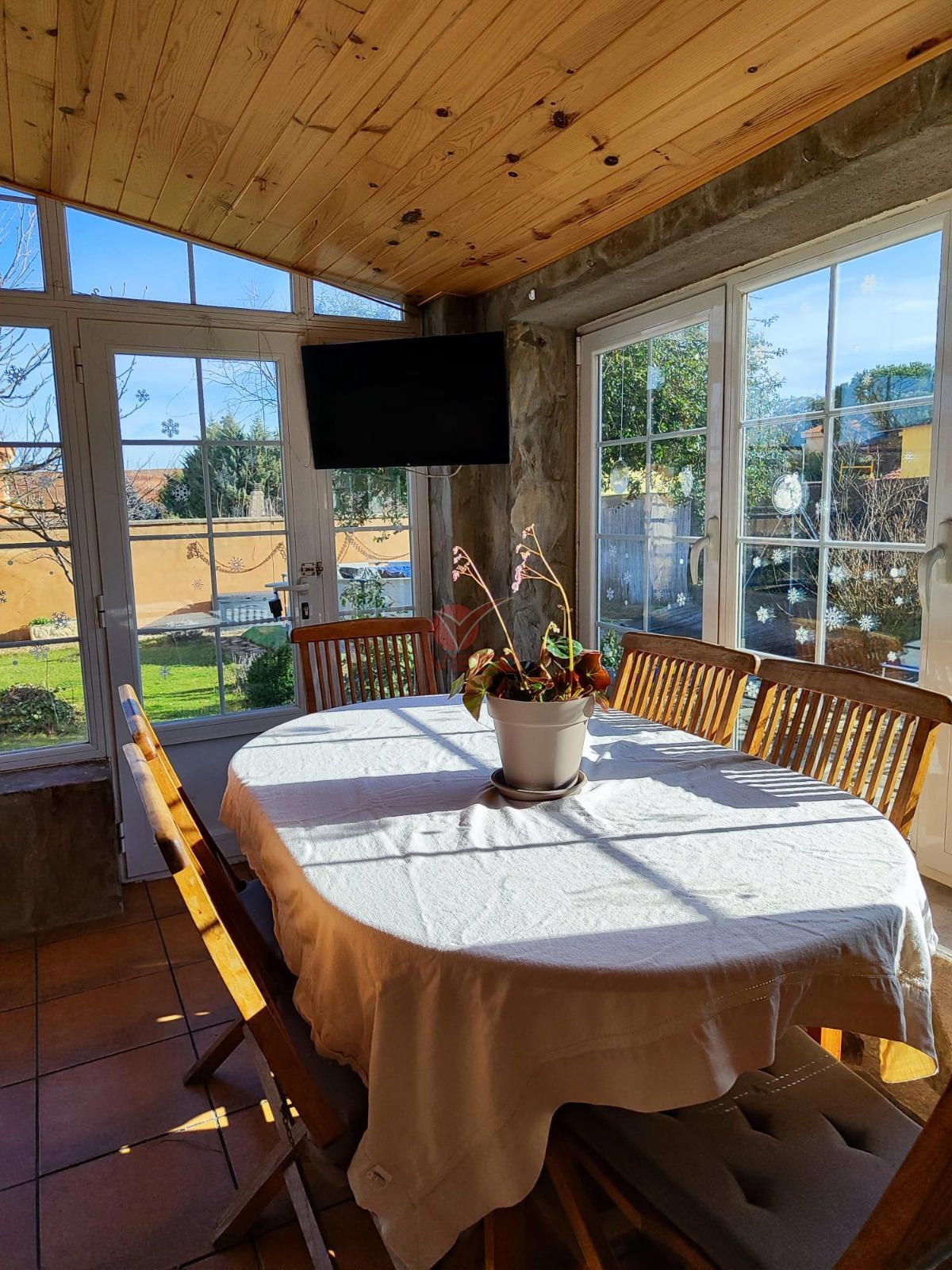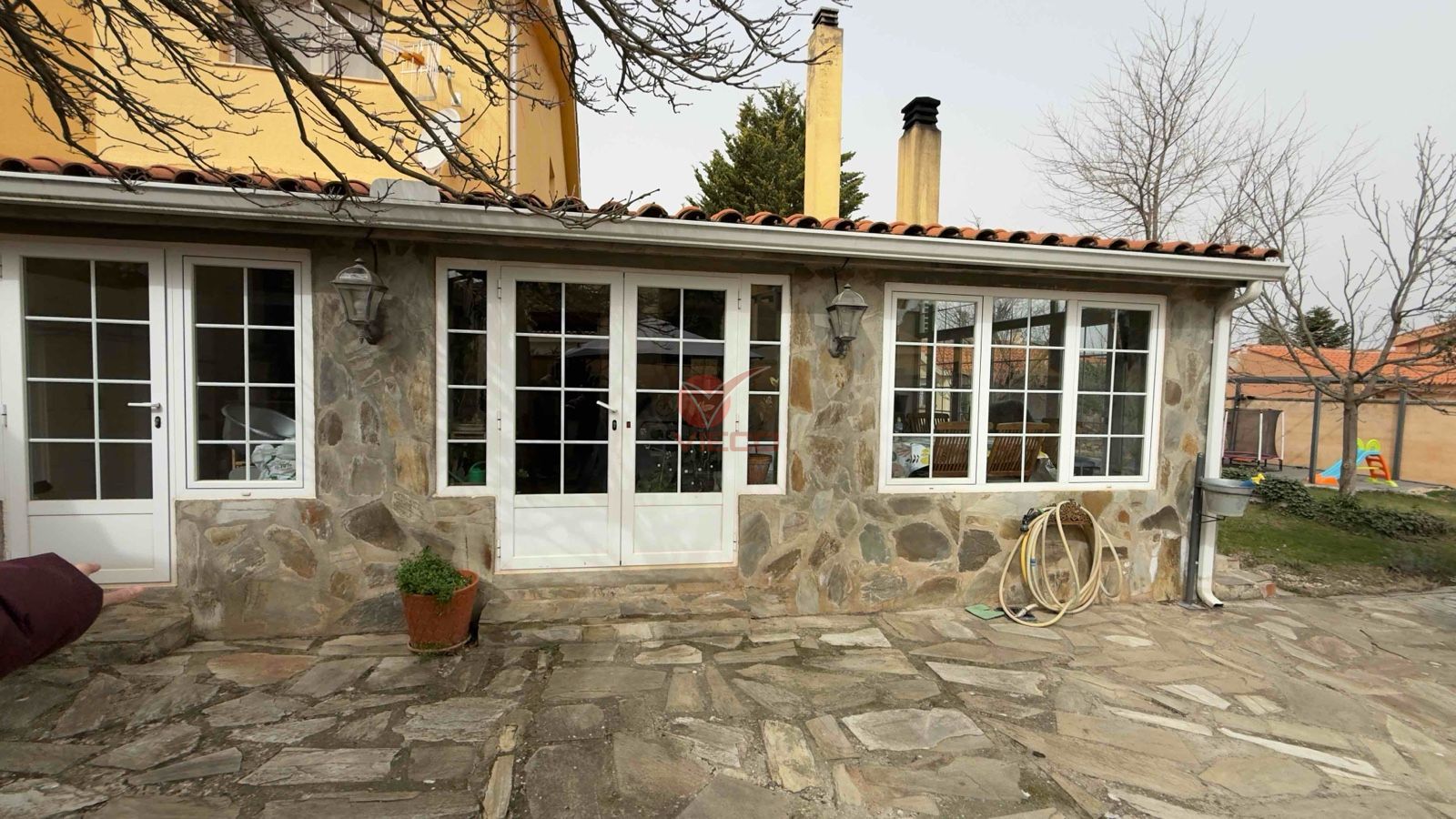 Pensada para el confort durante todo el año, la casa dispone de sistema de calefacción mediante caldera de gas y caldera de pellets, además de ventanas con rotura de puente térmico y doble acristalamiento tipo climalit, que garantizan eficiencia y aislamiento tanto en invierno como en verano.