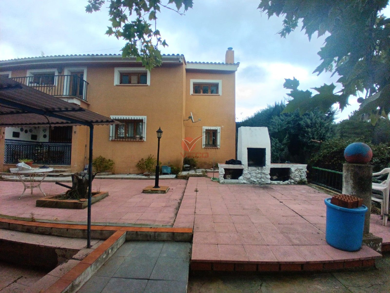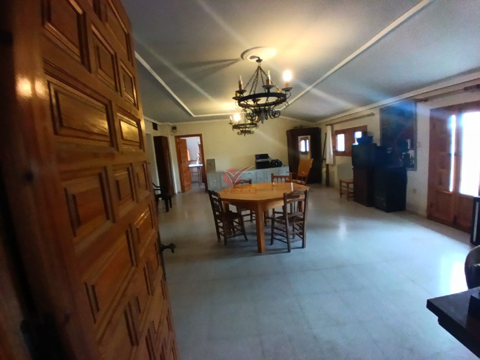 El chalet se divide en dos plantas con entradas independientes, planta baja cocina, salón, baño, tres habitaciones, porche y garaje; planta de arriba cocina, salón, baño, cuatro habitaciones, balcón y terraza. Incluye además varias construcciones adicionales que ofrecen múltiples posibilidades.