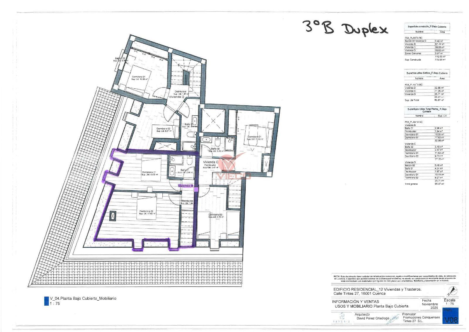 Dúplex en venta en zona CENTRO de Cuenca, con 83 m2, 2 habitaciones, salón cocina completamente amueblada con electrodomésticos y 2 baños. Ascensor y Calefacción AEROTERMIA SUELO RADIANTE. Trastero. EN CONSTRUCCION. ENTREGA EN DICIEMBRE DE 2027. NO cobramos comisión al comprador.
