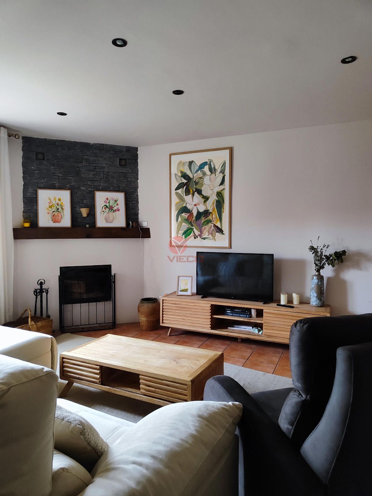 Pensada para el confort durante todo el año, la casa dispone de sistema de calefacción mediante caldera de gas y caldera de pellets, además de ventanas con rotura de puente térmico y doble acristalamiento tipo climalit, que garantizan eficiencia y aislamiento tanto en invierno como en verano.